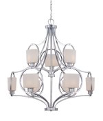 Designers Fountain 84089 Mirage 9 Light Chandelier in Chrome Finish Color - Chrome A mix of refined sophistication and simple chic, the Designers Fountain 84089 Mirage 9 Light Chandelier in Chrome Finish flaunts a streamlined look with voluptuous curves to create a fixture that will add oodles of upscale charm to your foyer or dining space. Polished chrome finish offers the perfect foil for the white opal glass shades, while nine 100-watt incandescent medium base bulbs (not included) emit warm atmospheric light for dining or entertaining. With its dramatic silhouette and practical function, this beautiful, 2-tier chandelier will shine bright in both casual and formal settings. About Designers Fountain Headquartered in sunny Los Angeles, Designers Fountain lets you show off your creative side. Indulge yourself and your home with a range of lighting styles, from contemporary to classic, each crafted with care from high-quality materials. Designers Fountain supplies lighting fixtures to over 1,200 authorized North American dealers and sources designs from across the world. Get quality lighting that enhances your home while impressing you with its affordable price... only from Designers Fountain. Modern- or contemporary-style chandelier. Chrome finish; white opal shade. Decorative ceiling light for interior use. Requires (9) 100W incandescent medium base bulbs (not included). Overall dimensions: 34.5W x 37.5H inches.