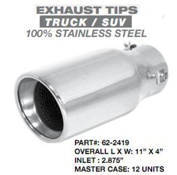 Exhaust Tip (12 Pack) . 11"X 4" E.T. Style Slant Cut Truck-Suv-Diesel Exhaust Tip/Bolt On/Fits Pipes Up To 3" I.D./100 % Stainless Steel T304 Metal/(Case Of 12)