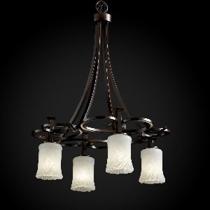 Justice Design GLA-8565-26-WHTW-MBLK Arcadia 4-Downlight Chandelier The Veneto Luce™ Collection is Justice Design Group, LLC's new collection incorporating handcrafted glass shades. Each glass shade is truly a work of art, created by artisans in the historic city of Venice, Italy, where glass-making has been an art form for more than 700 years. Using traditional forming methods, Venetian artisans form the glass shades into three distinctive shapes: Cylinder, Bowl, and Tulip. Each glass shade is available in three finishes: Whitewash, Amber, and Gold with Clear Rim. Highlights of the Veneto Luce™ Collection include: