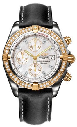 NEW BREITLING CHRONOMAT EVOLUTION MENS WATCH C1335653/A647 - WITH MANUFACTURER SERIAL NUMBERS - White Mother of Pearl Diamond Dial - Diamonds Set on Bezel - Chronograph Feature - Self Winding Automatic Chronometer Movement - 3 Year Warranty - Guaranteed Authentic - Certificate of Authenticity - Scratch Resistant Glareproof Sapphire Crystal - Polished Solid 18K Rose Gold with Steel Case - Black Leather Strap - Manufacturer Box & Manual - 300 Meters / 1000 Feet Water Resistant - 44mm = 1 3/4" Case, 7" Adjustable Strap - Tang Buckle - Uni-Directional Diamond Rose Gold Rotating Bezel - Luminescent Hands & Markers - Screw Down Crown & Caseback - Case Thickness Approximately 17mm Also Known As Model # 476 / 768 / C13356 / C1335653/A647-435X / C1335653/A647-BLKLT