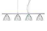 Besa Lighting 4LP-1779MG-PN 4 Light Island LightGlass:Marble Grigio, Light Bulb:(4)40w T4 G9 120v Halogen, Finish:Polished Nickel Cable-hung linear pendant with four handcrafted glass diffusers. 10' AWM-type cord. Clear or bronze tint coordinates with metal finish. 2X 18 cord sleeves for optional use included. Canopy is plated stamped steel, with 2x 10' stainless steel cable support. Installs directly to a 4 octagonal ceiling box. Suitable for sloped ceilings when not using cord sleeves.